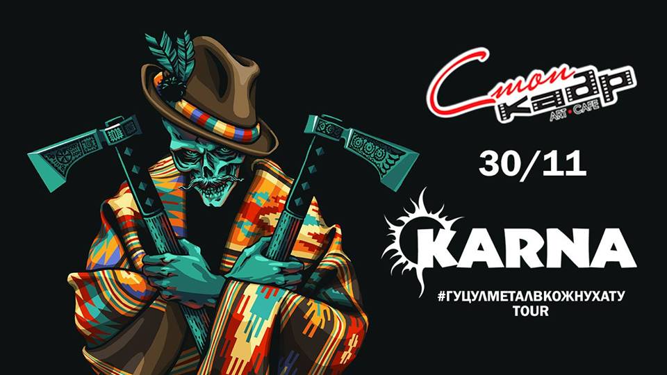 30 листопада у арт-кафе «Стоп-Кадр» у Луцьку відбудеться бурхлива вечірка за участю гурту KARNA. А сьогодні, 23 листопада, діє знижка 70% на кожен другий квиток на концерти туру #гуцулметалвкожнухату.