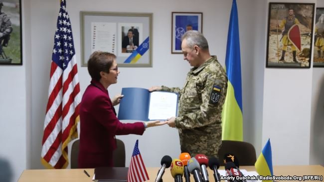У церемонії взяли участь посол США в Україні Марі Йованович і керівник Генштабу ЗСУ Віктор Муженко.