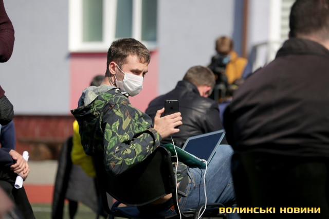Перед входом на «Спортивне ядро» вишикувалась черга – кілька муніципалів перевіряють журналістів на наявність масок та рукавиць, а також проводять температурний скринінг. На території стадіону лише декілька депутатів, але всі вони в засобах особистого захисту.До сесії все готове – це і стільці, відстань, між якими два метри, й імпровізована президія зі столу, місце на якій мав зайняти виконувач повноважень міського голови Григорій Пустовіт.