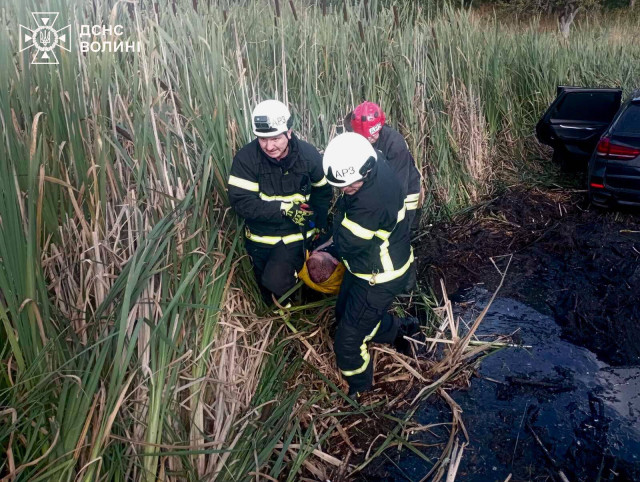 На місці події працювало відділення рятувальних робіт Аварійно-рятувальний загін спеціального призначення м. Луцьк. Рятувальники обережно винесли постраждалого з автомобіля, поклали на ноші й через бездоріжжя транспортували до карети швидкої допомоги.