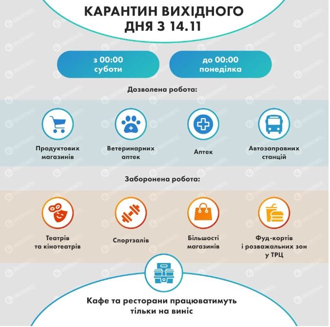 Нагадаємо, що на час карантину вихідного дня (з 14 по 30 листопада) до загальних обмежень додаються такі: