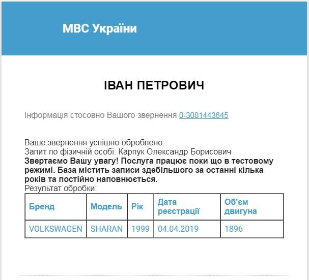 Автомобіль з відповідними номерними знаками 1999 року випуску та об’ємом двигуна 1896 кубічних сантиметрів був зареєстрований 4 квітня 2019 року.Ймовірно, за кермом автомобіля в момент аварії перебував саме його власник, адже аварію розслідують працівники Державного бюро розслідувань, про що повідомила речниця Територіального управління ДБР у Львові Зореслава Тивін.