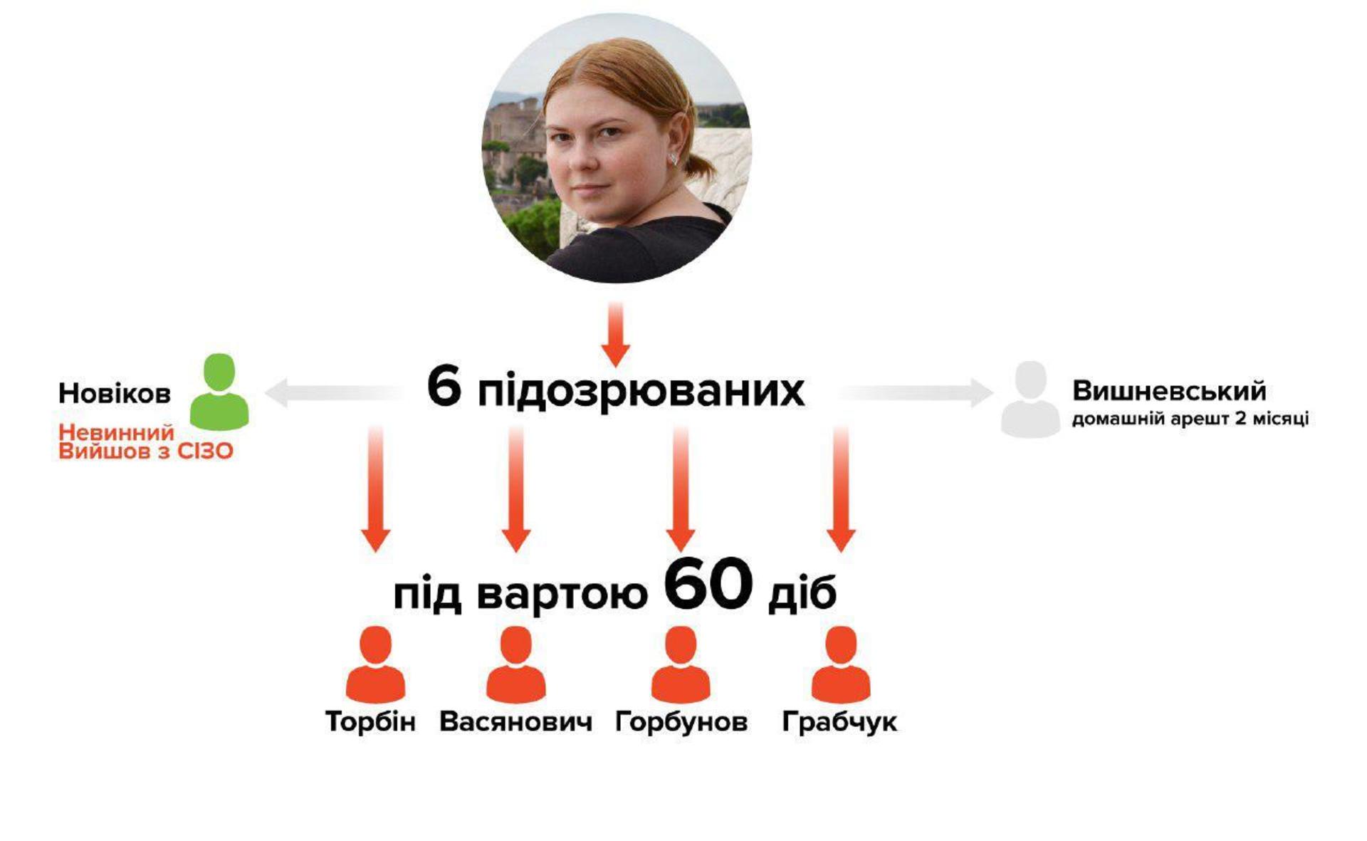 Також 22 серпня підозрюваного в нападі на Гандзюк В'ячеслава Вишневського відправили під домашній арешт на час слідства.