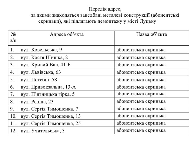 Занедбані абонентські скриньки на території Луцька вирішили демонтувати. Після їх усунення на місцях буде відновлено належний благоустрій.