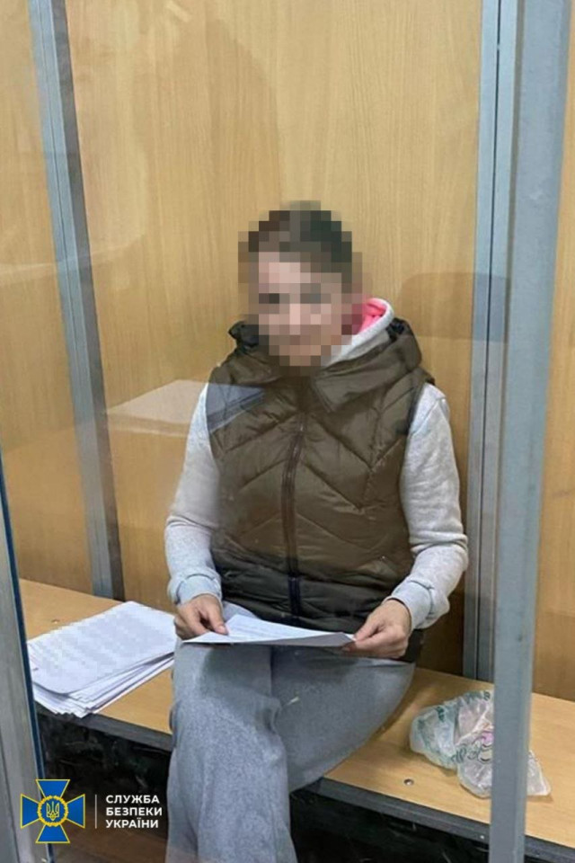 Слідчі Служби безпеки повідомили затриманій про підозру за ч. 2 ст. 111 Кримінального кодексу України (державна зрада, вчинена в умовах воєнного стану).Зловмисниця перебуває під вартою. Їй загрожує довічне ув’язнення з конфіскацією майна.