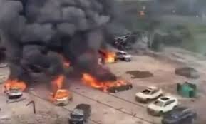 За попередніми даними, бензовоз вибухнув після зіткнення автомобілем, який стояв попереду. В результаті вибуху деякі автомобілі відлетіли в сторону на десятки метрів.