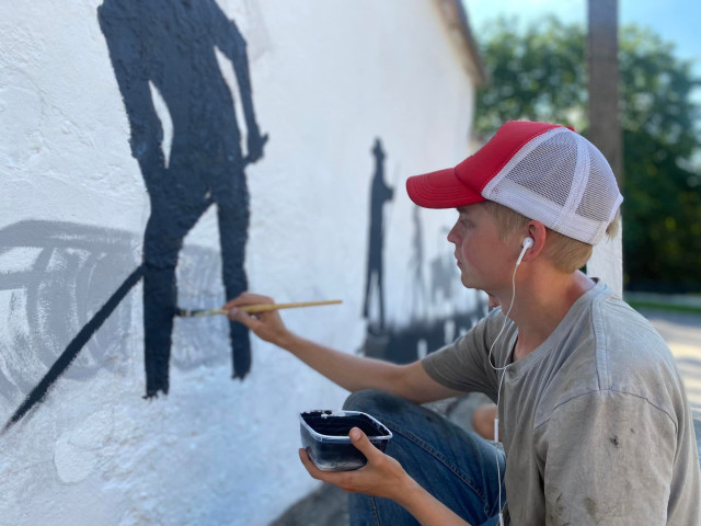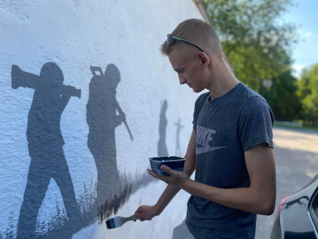 Юні жителі Нововолинська Павло та Максим нині заклопотані важливою справою – створюють патріотичний мурал на стіні Нововолинської центральної міської лікарні.