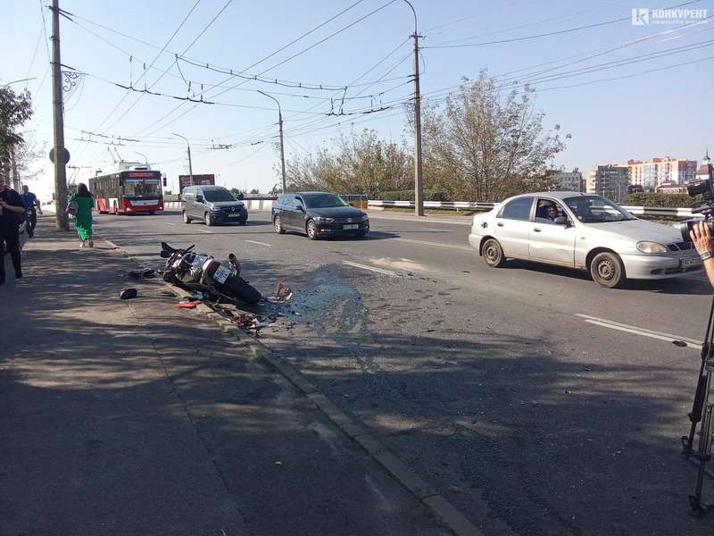 З матеріалів справи відомо, що ДТП трапилася 29 вересня на шляхопроводі, який з’єднує проспекти Соборності та Перемоги. Водій BMW I3 Андрій К., рухаючись у заторі в напрямку проспекту Перемоги, розпочав здійснюючи маневр розвороту в забороненому місці. Він перетнув подвійну суцільну лінію та виїхав на смугу зустрічного руху, де допустив зіткнення з мотоциклом марки YAMAHA, який рухався у зустрічному напрямку. В результаті ДТП мотоцикліст отримав тяжкі тілесні ушкодження.