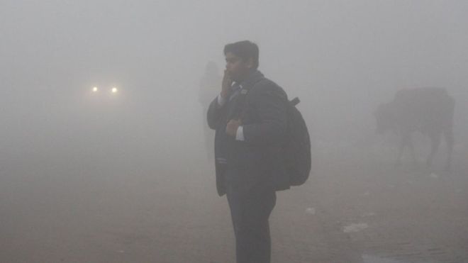 У понеділок індійську столицю на додачу до холоду огорнув густий смог: до туману додалося вкрай сильне забруднення повітря.