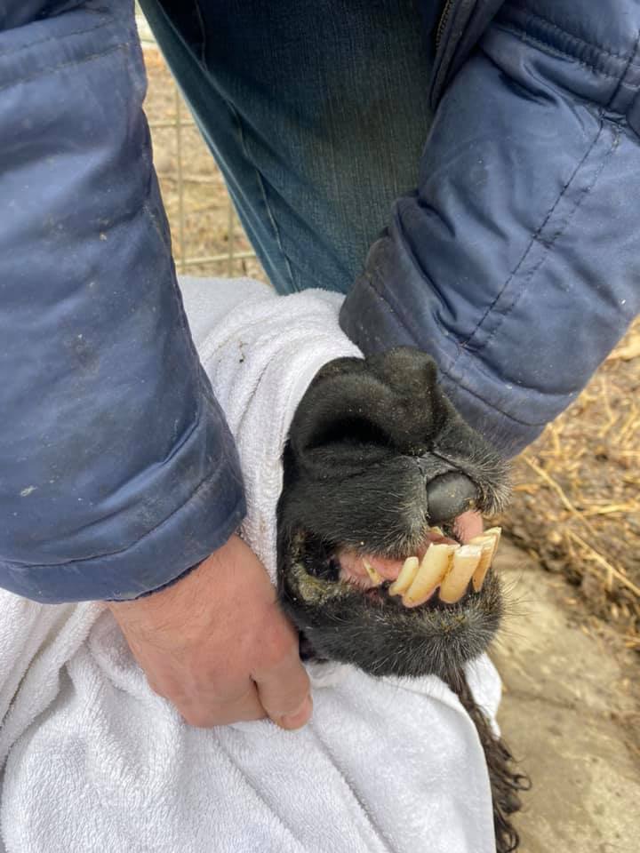З її слів, в альпаки виявили стоматологічну проблему: зуби виросли занадто великими, заважали тварині харчуватись.