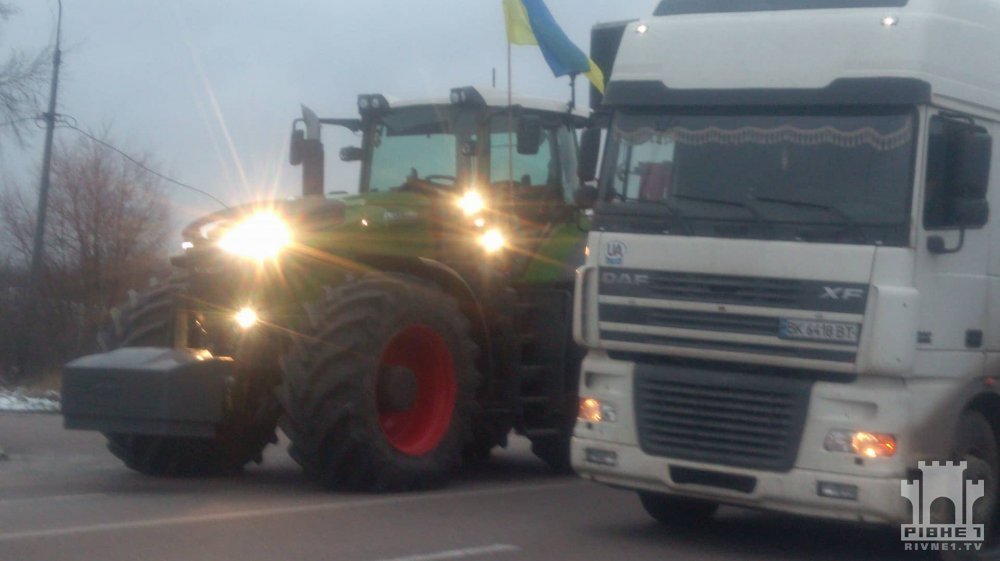 Як інформує телеканал Рівне-1, ранок на Рівненщині біля Корецького посту розпочався страйком аграріїв, які паралізували рух міжнародною трасою Київ - Чоп.
