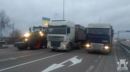 Як інформує телеканал Рівне-1, ранок на Рівненщині біля Корецького посту розпочався страйком аграріїв, які паралізували рух міжнародною трасою Київ - Чоп.