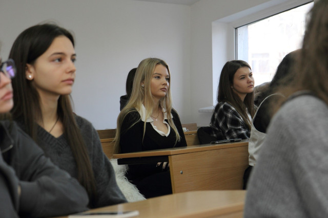 «Вітаємо на факультеті філології та журналістики режисера, сценариста Єжи Залевського. Маємо вже таку традицію проводити на факультеті в межах PR Small Talks зустрічі з фахівцями, які досягли успіху в різних галузях. Сьогодні, у 1000-й день повномасштабного вторгнення росії на територію України, маємо символічну зустріч, присвячену кінодокументуванню війни», – представила гостя проректор з навчально-виховної роботи та комунікації Наталія Благовірна.