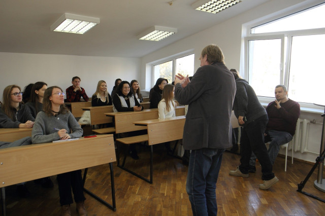 19 листопада у Волинському національному університеті імені Лесі Українки на базі факультету філології та журналістики відбулася зустріч із польським режисером Єжи Залевські на тему «Кіномайстерня. Документування війни в Україні».