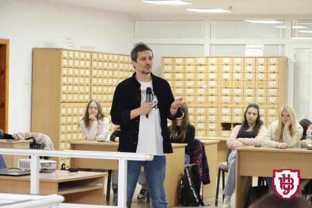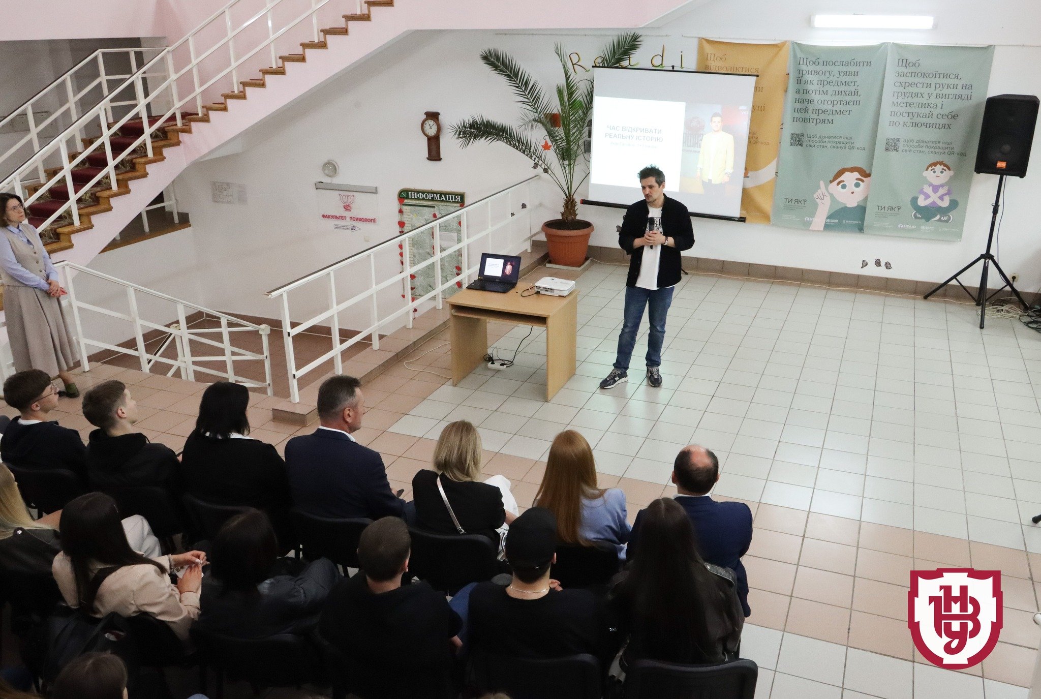 Читати ще: Радзивіли на Волині: журналіст Акім Галімов показав таємниці Олицького замку. ВідеоНа початку свого виступу Акім Галімов закликав усіх до відкритого діалогу. «Надзвичайно круто бути тут присутнім, в Університеті, серед студентства. Сьогодні ми поговоримо про нашу історію, ідентичність», – заявив медійник.