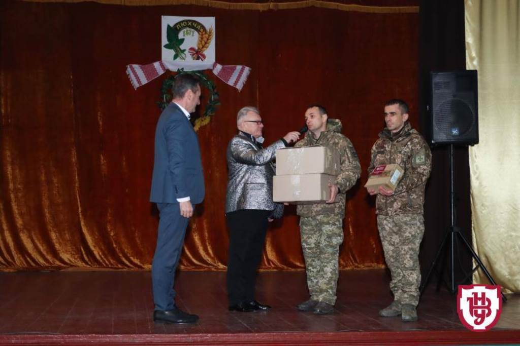 Ректор Анатолій Цьось подякував військовим за службу і розповів про те, як університет співпрацює та допомагає ЗСУ. Окрім цього, військовим вручили п’ять квадрокоптерів, солодощі та предмети побутового вжитку.Читати ще: Тренінги, виступи, продаж смаколиків: у ВНУ – масштабний ярмарок для допомоги військовим