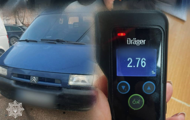 Чоловік погодився пройти огляд на стан сп’яніння у встановленому законом порядку в медичному закладі. Результат огляду – 2,76 проміле.
