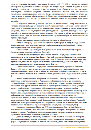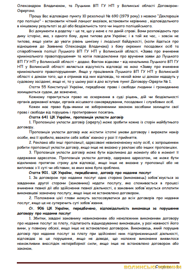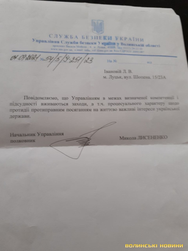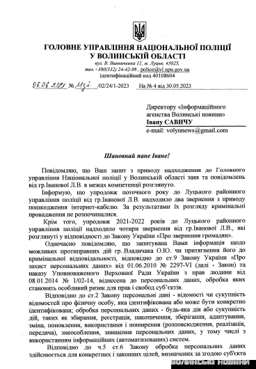 Окрім того, впродовж 2021-2022 років до Луцького районного управління поліції надходило чотири звернення від Лідії Іванової, які розглянуті у відповідності до Закону України «Про звернення громадян».