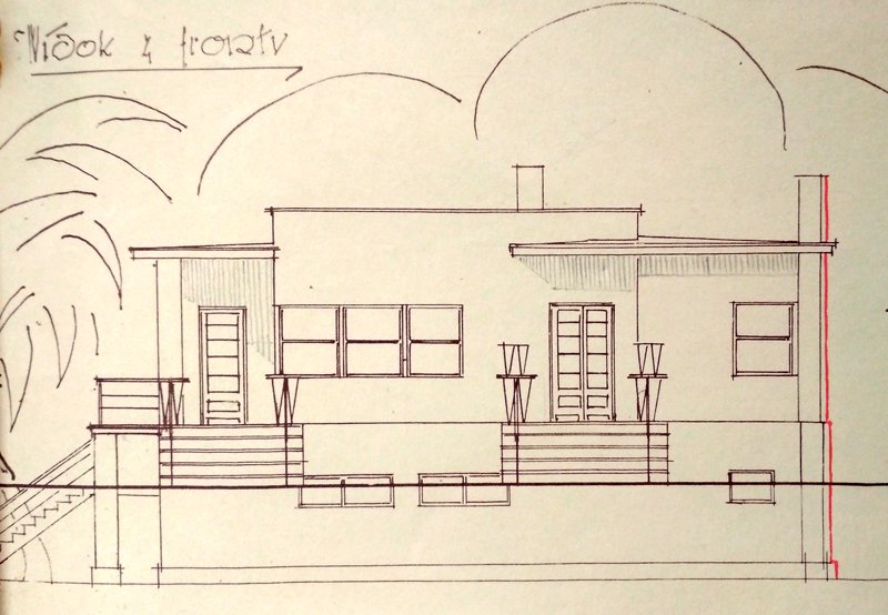 Стильна модерністська кав’ярня була вмонтована у похилий рельєф таким чином, що з одного боку пагорб забирав стіну першого поверху, а з протилежного виникала гарна можливість влаштування літньої тераси або широких панорамних вікон, чим і скористався архітектор. Проєкт виконав Тадеуш Сівецький у 1930 році.