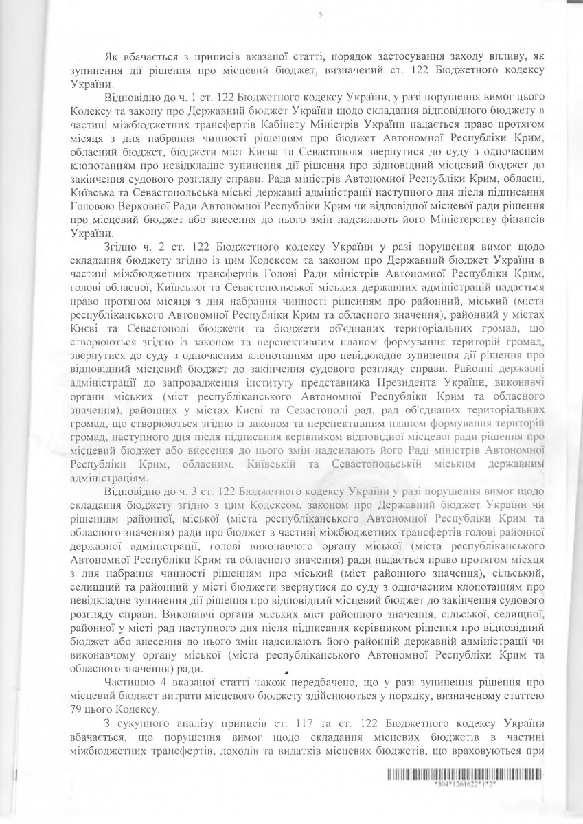 Окрім того, з сукупного аналізу приписів ст. 117 та ст. 122 Бюджетного кодексу України вбачається, що порушення вимог щодо складання місцевих бюджетів в частині міжбюджетних трансфертів, доходів та видатків місцевих бюджетів, що враховуються при визначенні обсягу міжбюджетних трансфертів, дає право суб'єкту бюджетного процесу вищого рівня протягом одного місяця з дня набрання чинності рішенням про відповідний місцевий бюджет звернутися до суду з одночасним клопотанням про невідкладне зупинення дії рішення про відповідний місцевий бюджет до закінчення судового розгляду справи.