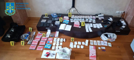 У ході санкціонованого обшуку орендованого помешкання, в якому зловмисники проживали у Луцьку, виявлено понад 180 г метадону, зіп-пекети, 1500 накладних про відправлення посилок, банківські картки.