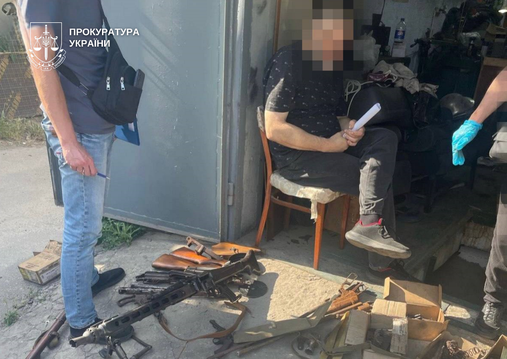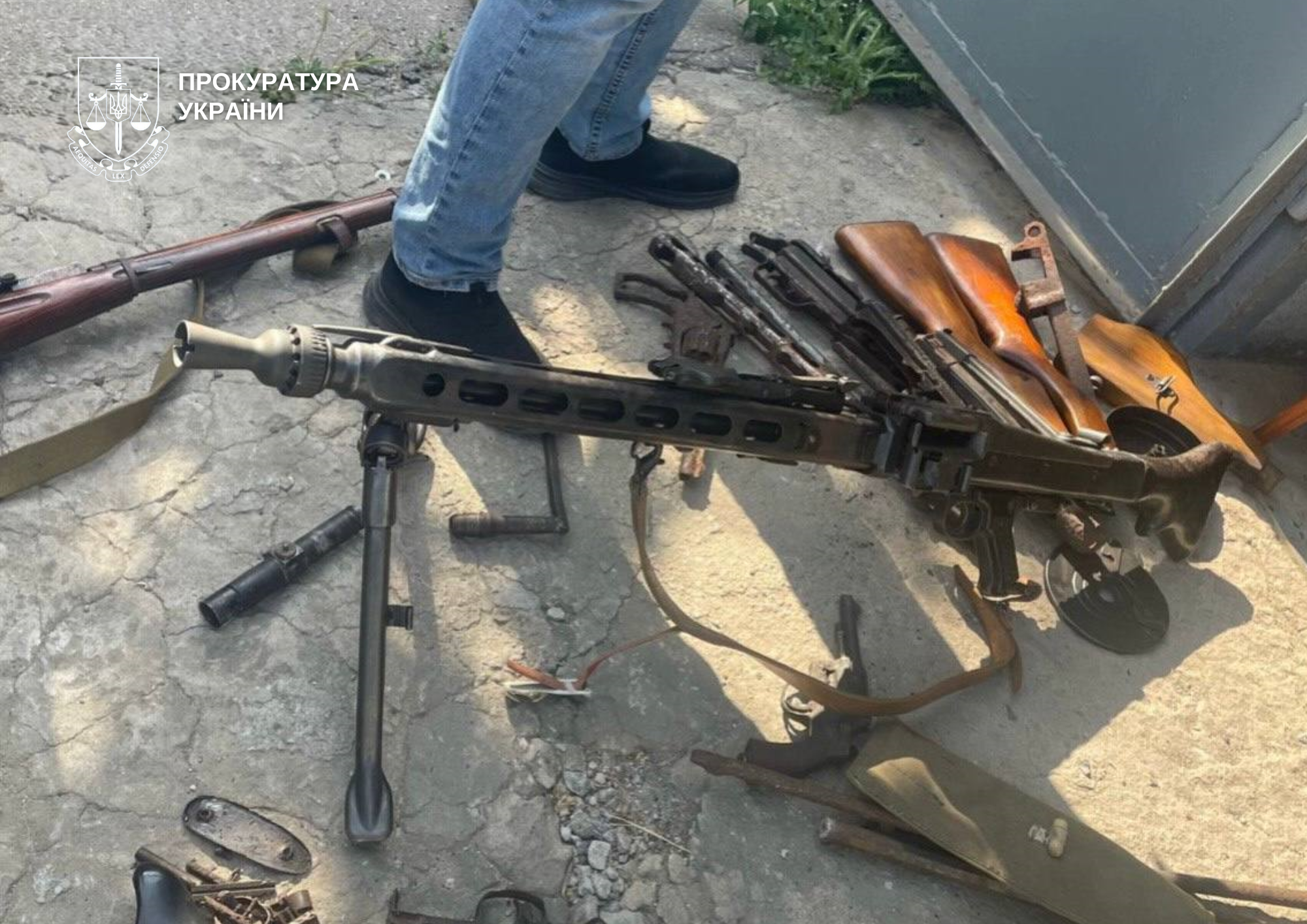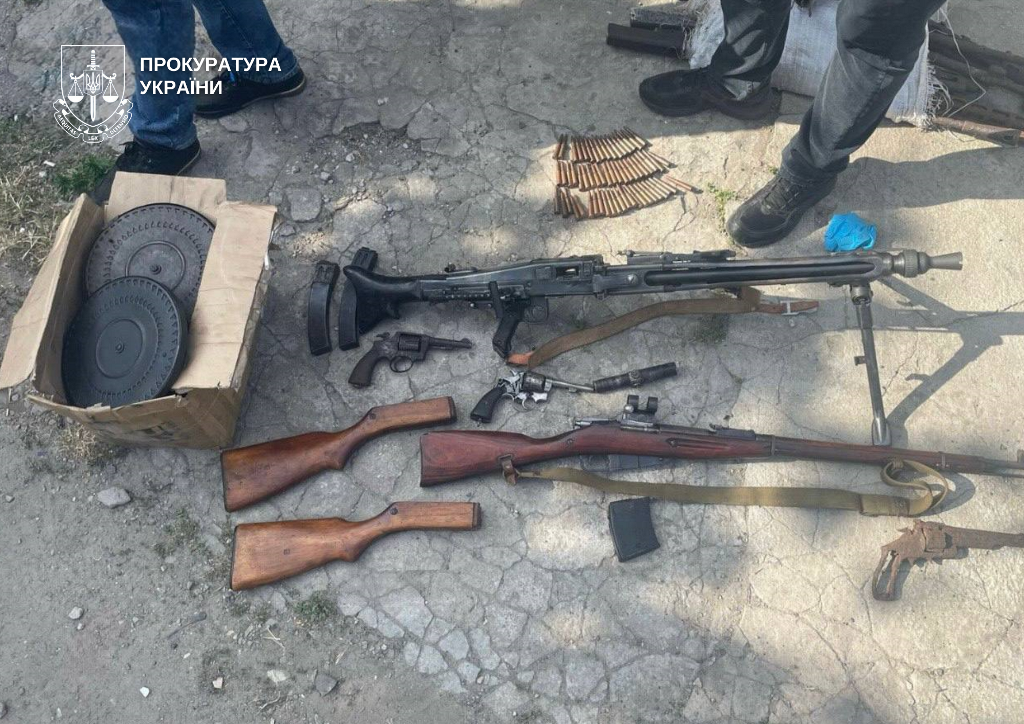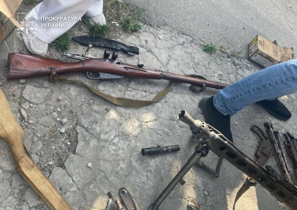 Під час обшуку в гаражі фігуранта виявлено та вилучено снайперську гвинтівку конструкції Мосіна з прицілом, патрони та деталі до зброї (приклади, стволи та інше).