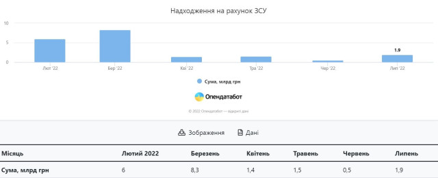 Проте варто зауважити, що вже у липні на ЗСУ українці пожертувавли 1,9 млрд гривень.