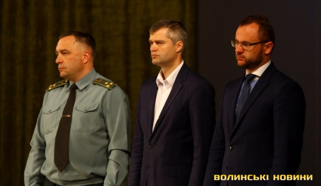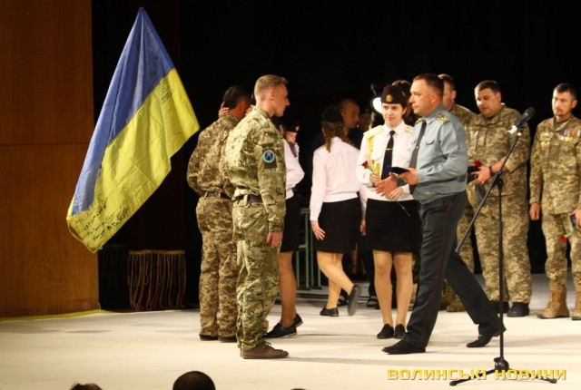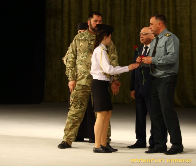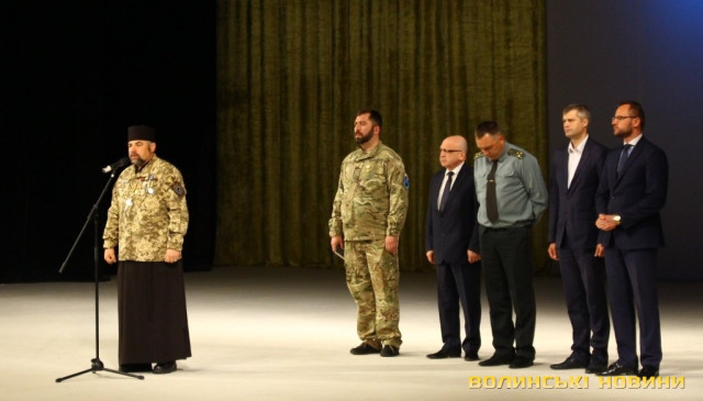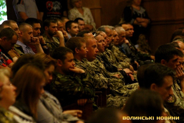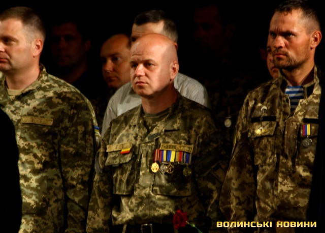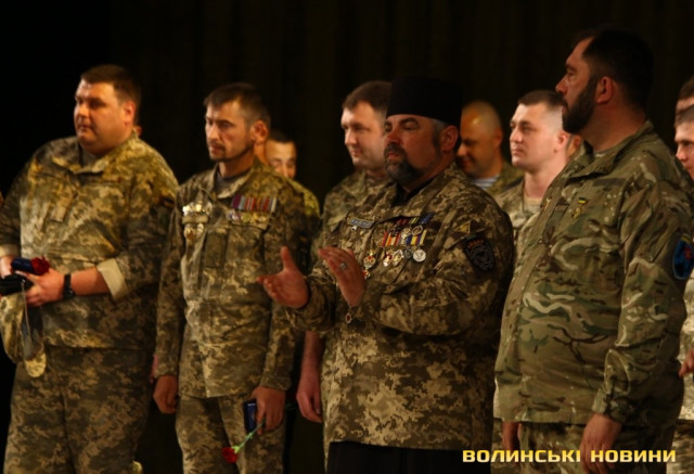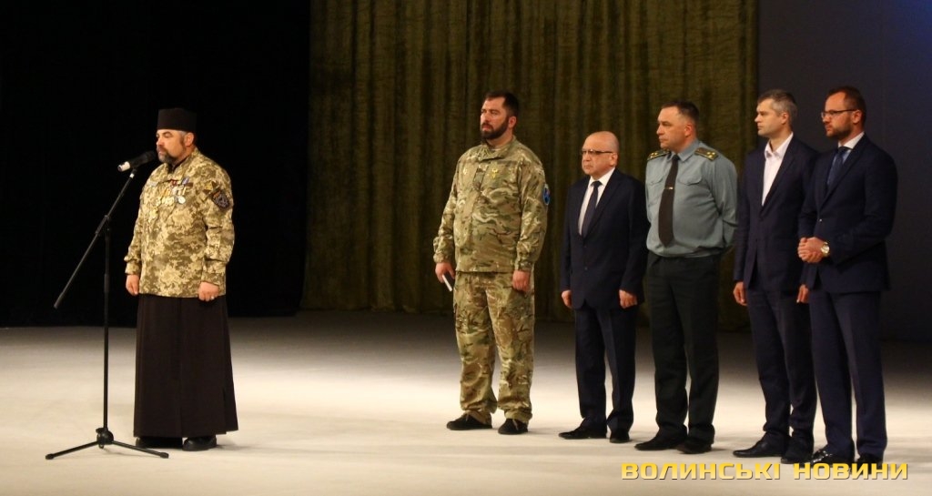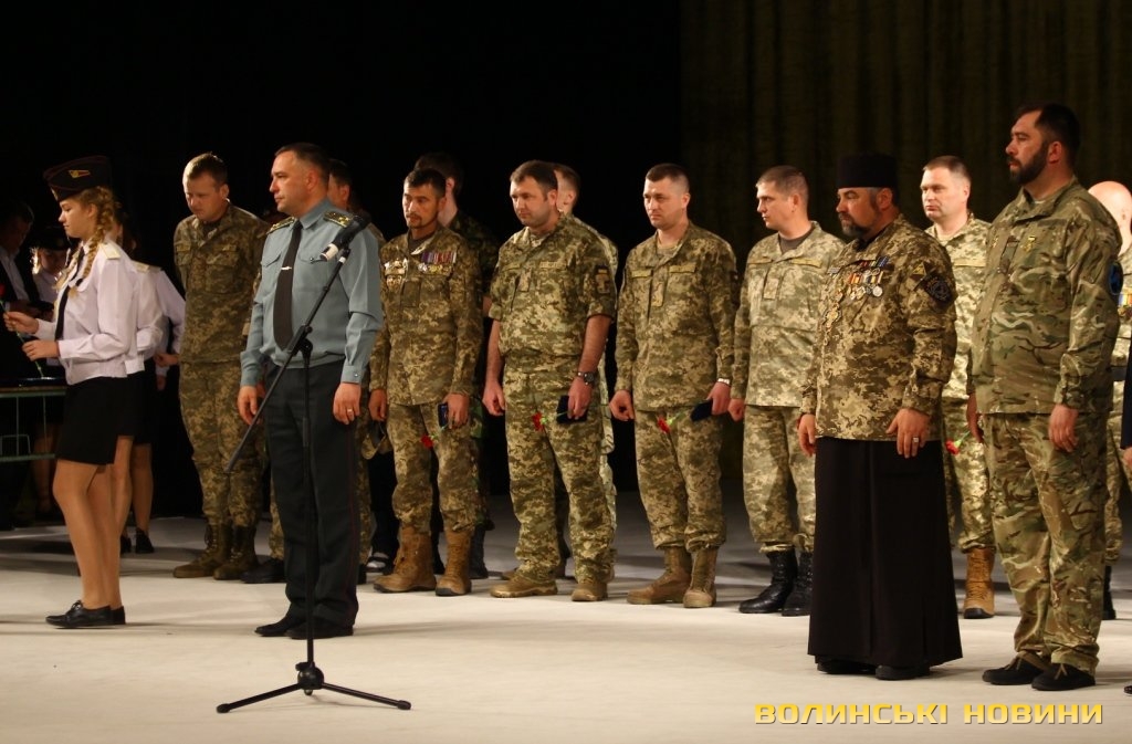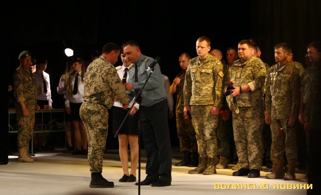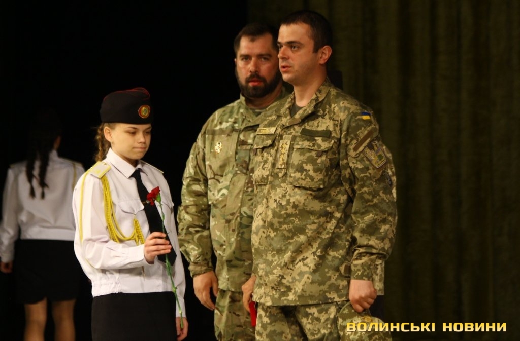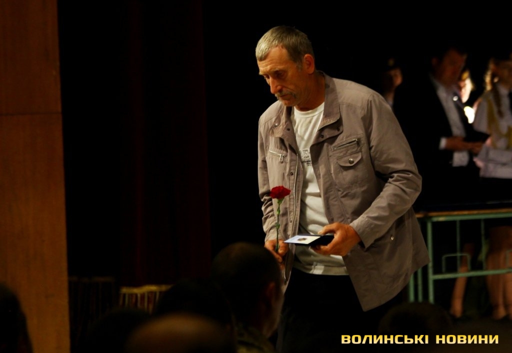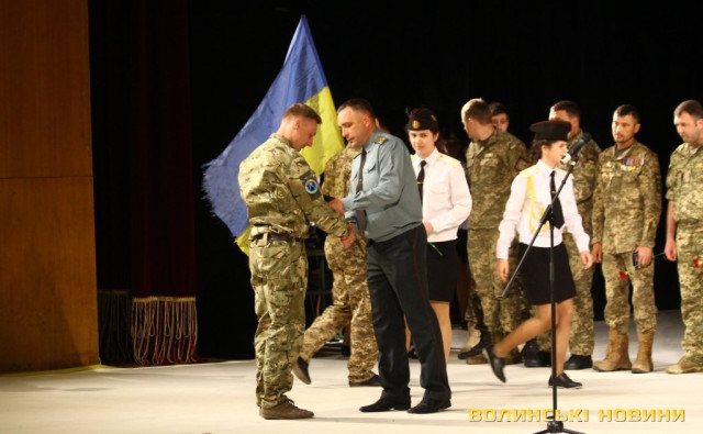 Голова ГО «Спілка воїнів АТО Волині» Олександр Серватович вручив вищу нагороду спілки, орден «Народний Герой Волині 2-го ступеню Срібний Тризуб» полковнику Юрію Іванущенку та капітану Василю Шпільці.