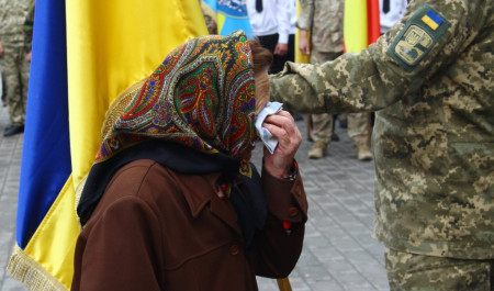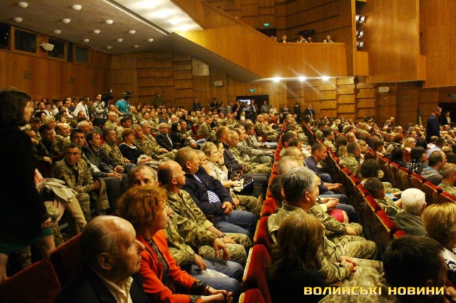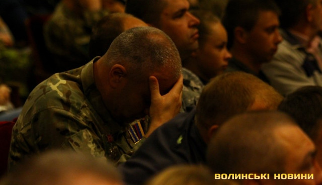 Під час цієї промови декілька матерів бійців демонстративно покинули залу драмтеатру зі словами «я не можу це слухати». Після слів голови ОДА з зали пролунав вигук «ганьба Гунчику, ганьба Порошенку!».