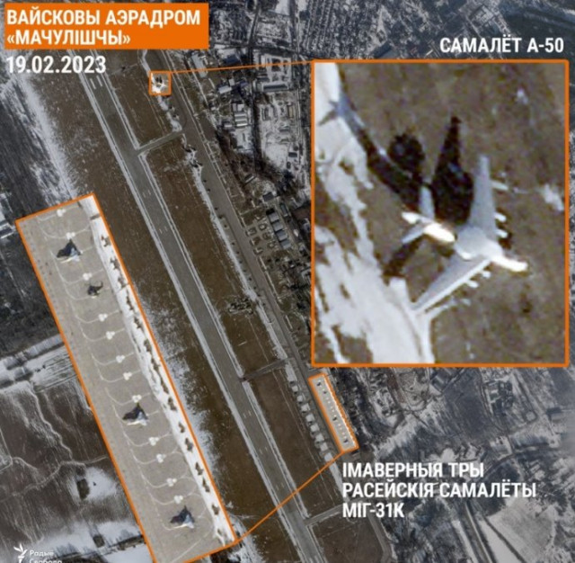 Супутник зафіксував на білоруському військовому аеродромі «Мачулищі» літак А-50, який міг бути атакований партизанами 26 лютого.