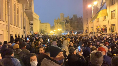 У Києві у вівторок ввечері, 23 лютого 2021 року, біля Офісу президента пройшла масова акція протесту на підтримку одеського активіста Сергія Стерненка, якого вранці суд засудив його на понад 7 років ув’язнення.