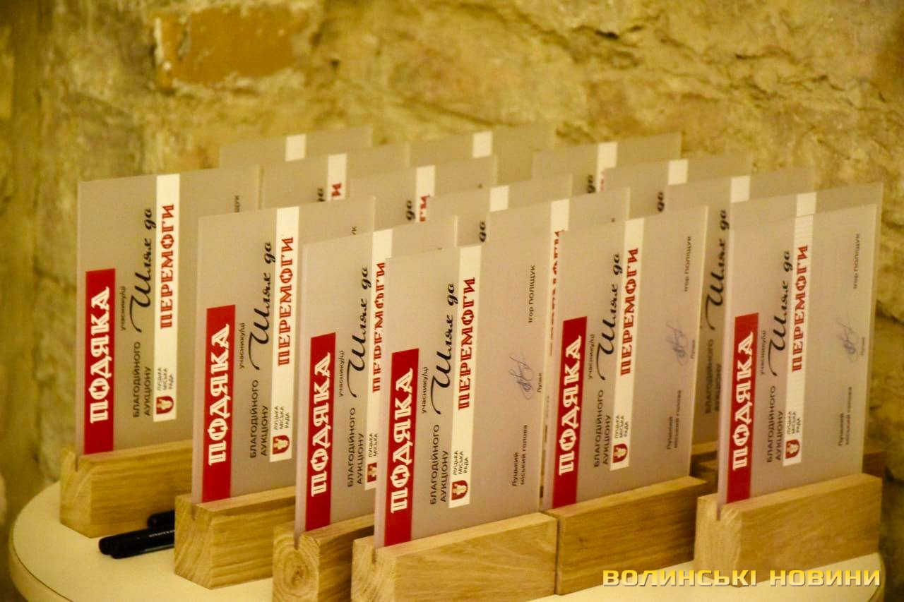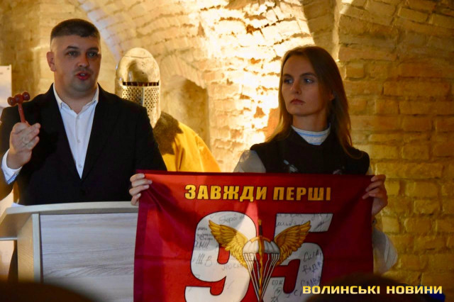 У Луцьку провели благодійний аукціон «Шлях до перемоги» на підтримку бригади «Любарт». Лоти для розіграшів мали унікальну цінність – це подарунки від військових для мера міста Ігоря Поліщука.