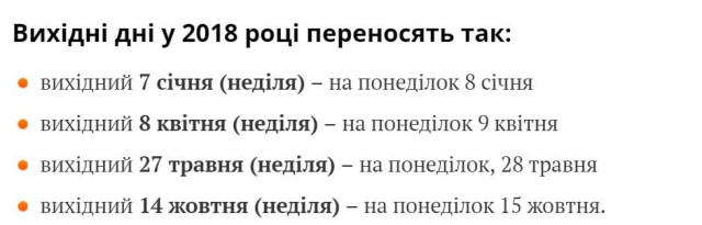 В Україні офіційно затверджені 11 днів державних свят, які є вихідними. Аби не заплутатися та не забути про жодне з них, створили зручний календар на 2018 рік.