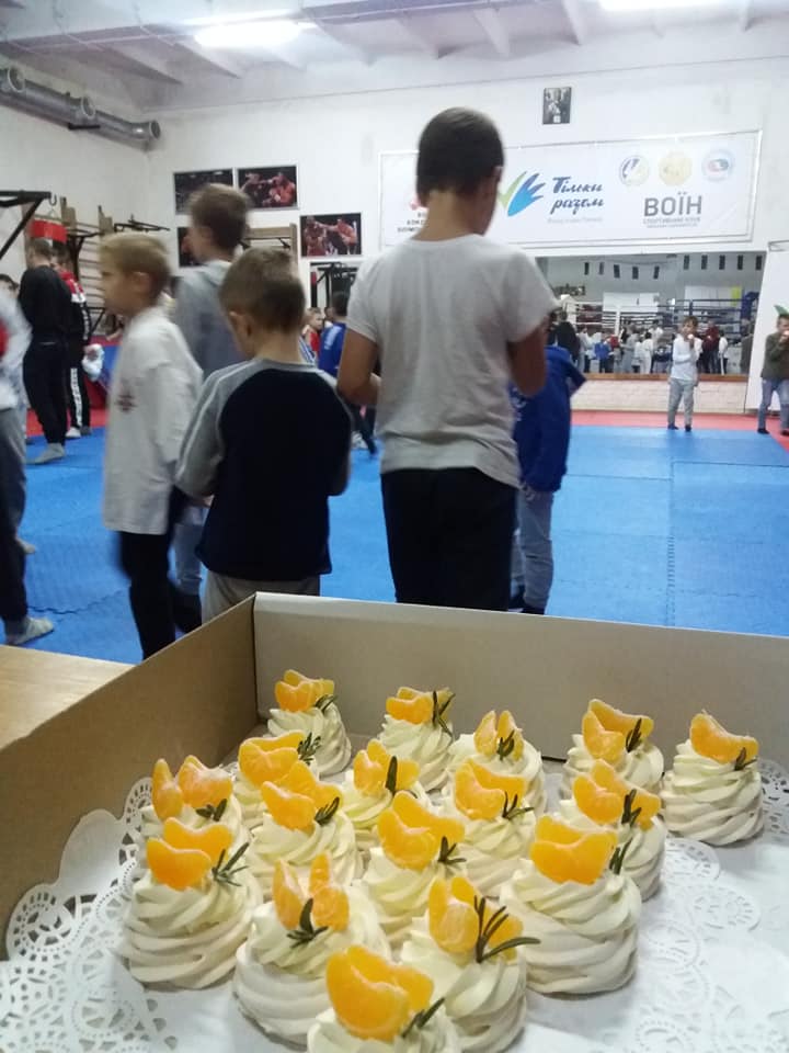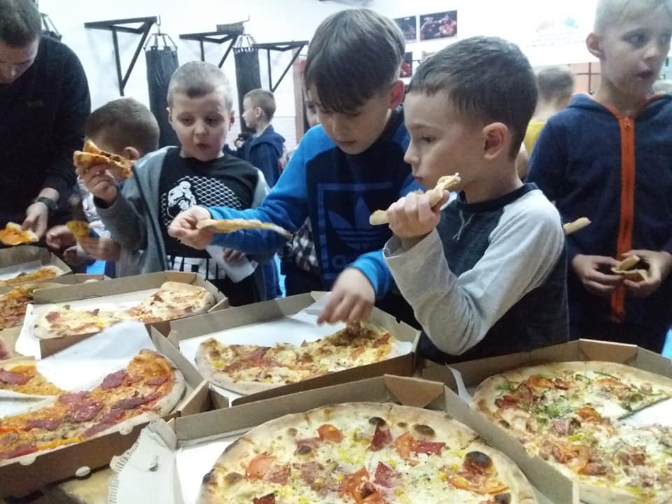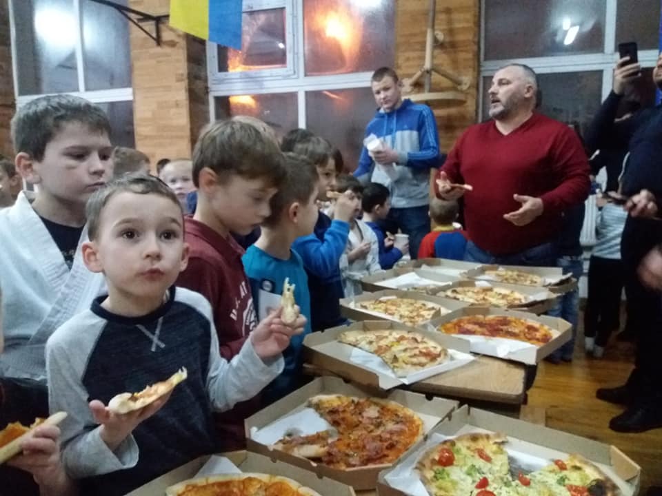Діти радісно смакували піцою та вишуканими десертами, ділячись враженнями від свята один з одним. Паралельно із цим старший тренер клубу Андрій Зінчук проводив зважування вихованців «Воїна», адже вже цими вихідними вони роз’їдуться Україною на чергові змагання з бойового самбо та ММА.