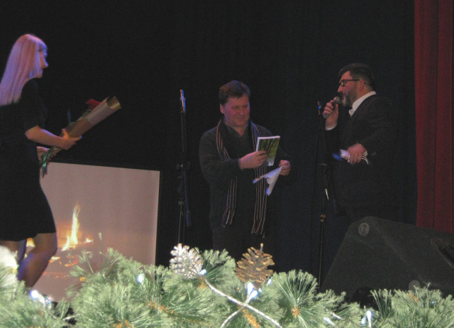 До слова, Сергій Євгенович нещодавно отримав звання Заслуженого діяча мистецтв України. Попри проблеми зі здоров’ям, він прийняв запрошення давнього друга Володимира Павліка і влаштував для лучан і для себе своєрідну музичну терапію. У перерві між композиціями спонукав утаємничених глядачів відгадати наступну пісню, що закономірна цій порі року – «Западенська зима».