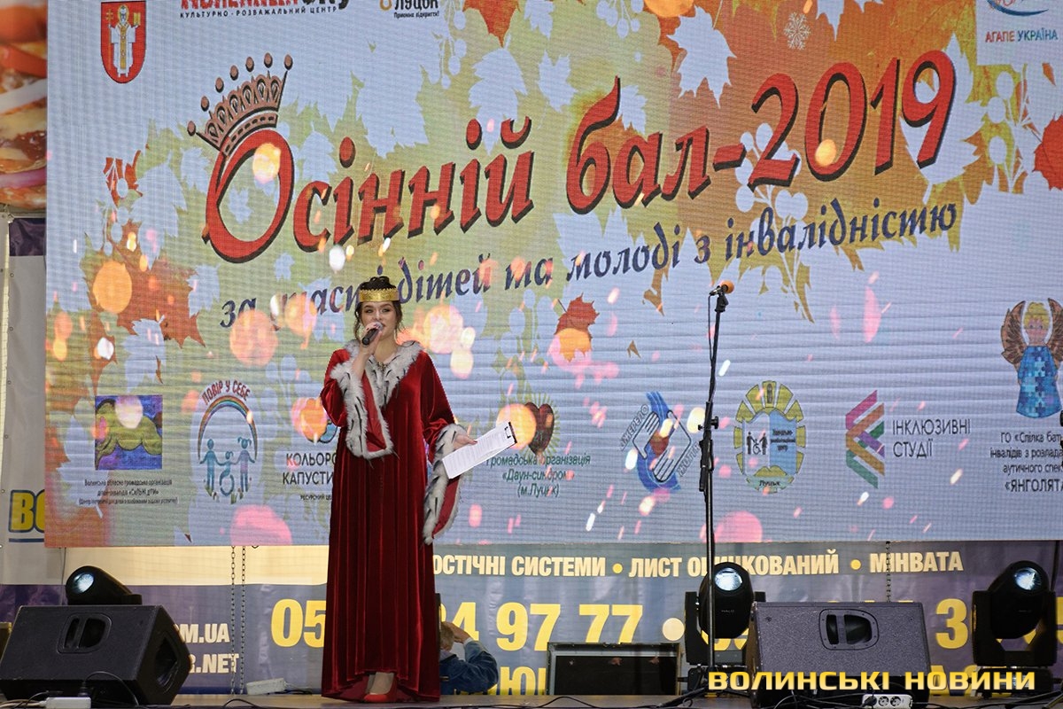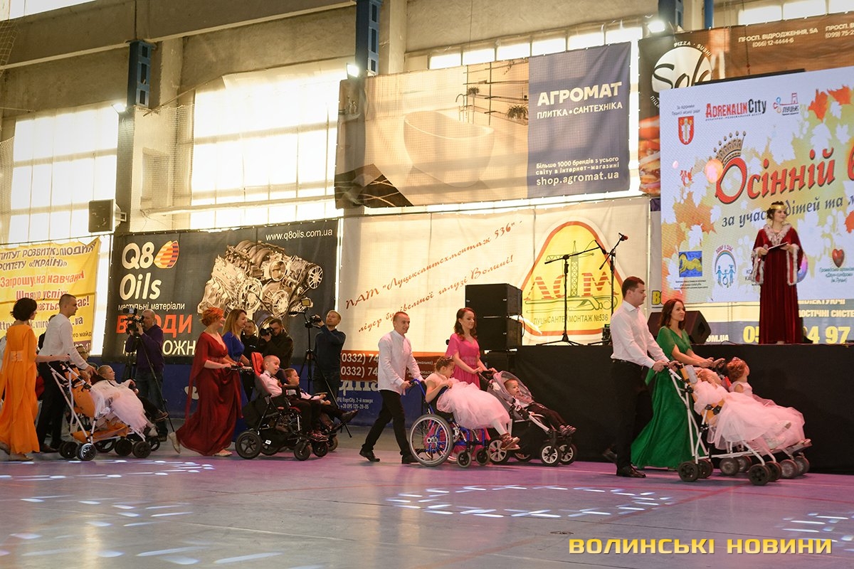 Довгоочікуваний проєкт «Осінній бал – 2019» для дітей та молоді з інвалідністю відбувся в розважальному центрі «Adrenalin-City» 22 листопада за підтримки Луцької міської ради.Журналістка Наталія Шпоняк розповіла Інформаційному агентству Волинські Новини, що як тільки почула про таку подію, сама захотіла взяти у ній участь. Разом з фотографом Ігорем Динею вони ходили на репетиції протягом двох місяців. Зі її слів, під час репетицій були певні труднощі, адже тендітним дівчатам важко пересуватися з візочком, бо дитинка може і нажати на гальма, і заплакати, але в цьому немає нічого страшного.«Я навіть не задумувалася над тим, чи брати участь. Твердо вирішила, що хочу цього, адже не часто вдається допомагати діткам з інвалідністю, тому я не могла відмовитися від такої можливості», – сказала Наталія Шпоняк, а Ігор Диня жартома додав, що він взагалі запасний запасного, але не міг відмовитися від участі в проєкті, який покликаний допомогти особливим діткам.Також журналістка зазначила, що спілкуватися з дітками не було важко, адже вони завжди посміхнуться тобі.Поки зі сцени звучали смичкові інструменти, глядачів у залі більшало, вони поступово займали вільні місця, а учасники хвилювалися, очікуючи виходу на танцювальний майданчик. Тим часом кликуни піснею «Волинь моя» сповістили про початок «Осіннього балу – 2019», і на сцену вийшли гості з минулого, король Данило та королева Анна, які почергово оголошували кожну з громадських організацій, які брали участь у сьогоднішньому дійстві. Ті ж, своєю чергою, виходили під гучні оплески глядачів, на яких згодом чекали десять неймовірних танцювальних номерів.Дітки разом зі своїми партнерами змусили глядачів переноситись з Франції в Аргентину, а звідти назад в Європу до Австрії. Адже громадські організації «Сильні діти», «Повір у себе», «Янголята», батьків дітей із Синдромом Дауна, «Кольорова капустинка», «Джерело життя» та Луцький навчально-реабілітаційний центр почергово виконували просто неймовірні віденський вальс, полонез та менуети, чим щоразу викликали неймовірні оплески.Чи не найбільш емоційним та зворушливим був фінальний виступ. На танцмайданчик вийшли дітки разом з депутатами міської ради, журналістами та громадськими активістами, і впродовж танцю вони виконували па то під сумні, то під веселі мотиви, зірвавши гучні овації.По завершенні танцю учасників та організаторів взялися вітати представники влади та гості дійства.