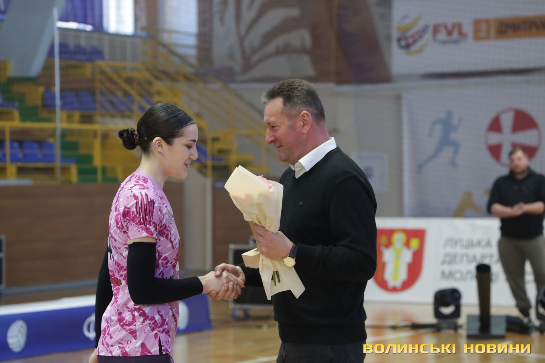 Привітали команди також ректор Волинського національного університету Анатолій Цьось, секретар Луцькради Юрій Безп’ятко, директори спортивних департаментів Луцькради й облдержадміністрації Володимир Захожий та Олександр Хвіщук.Окремо відзначили найкращих гравців сезону, серед яких – волейболістки луцького клубу Карина Корольчук і Марія Коршунова. А капітана лучанок Надію Вакулюк визнали найкращою в Першій лізі загалом.