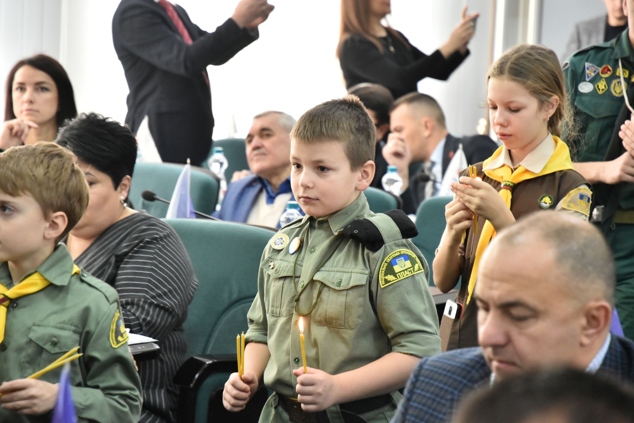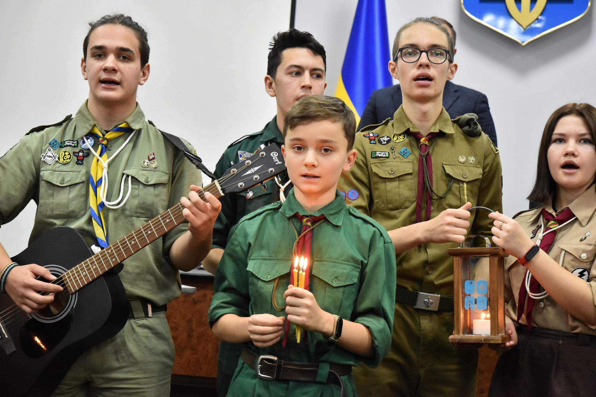 Члени скаутської організації «Пласт» передали міському голові та обранцям громади Вифлеємський вогонь Миру.
