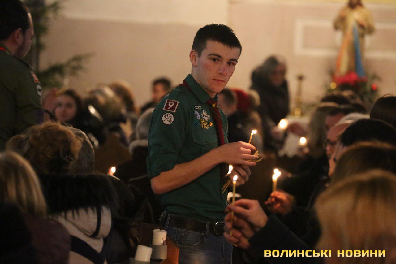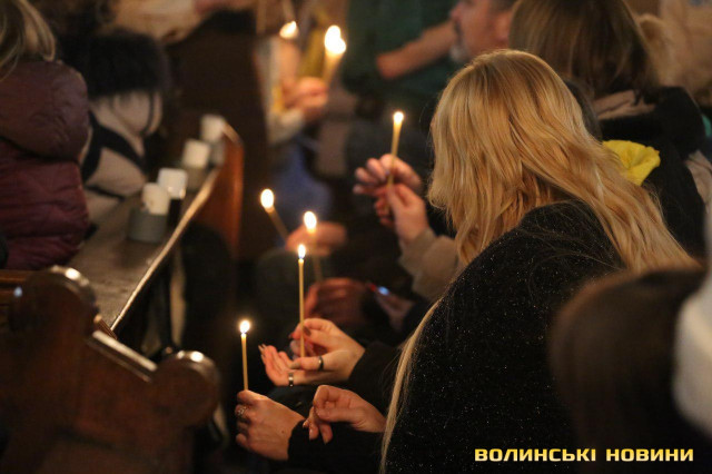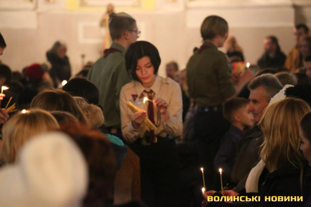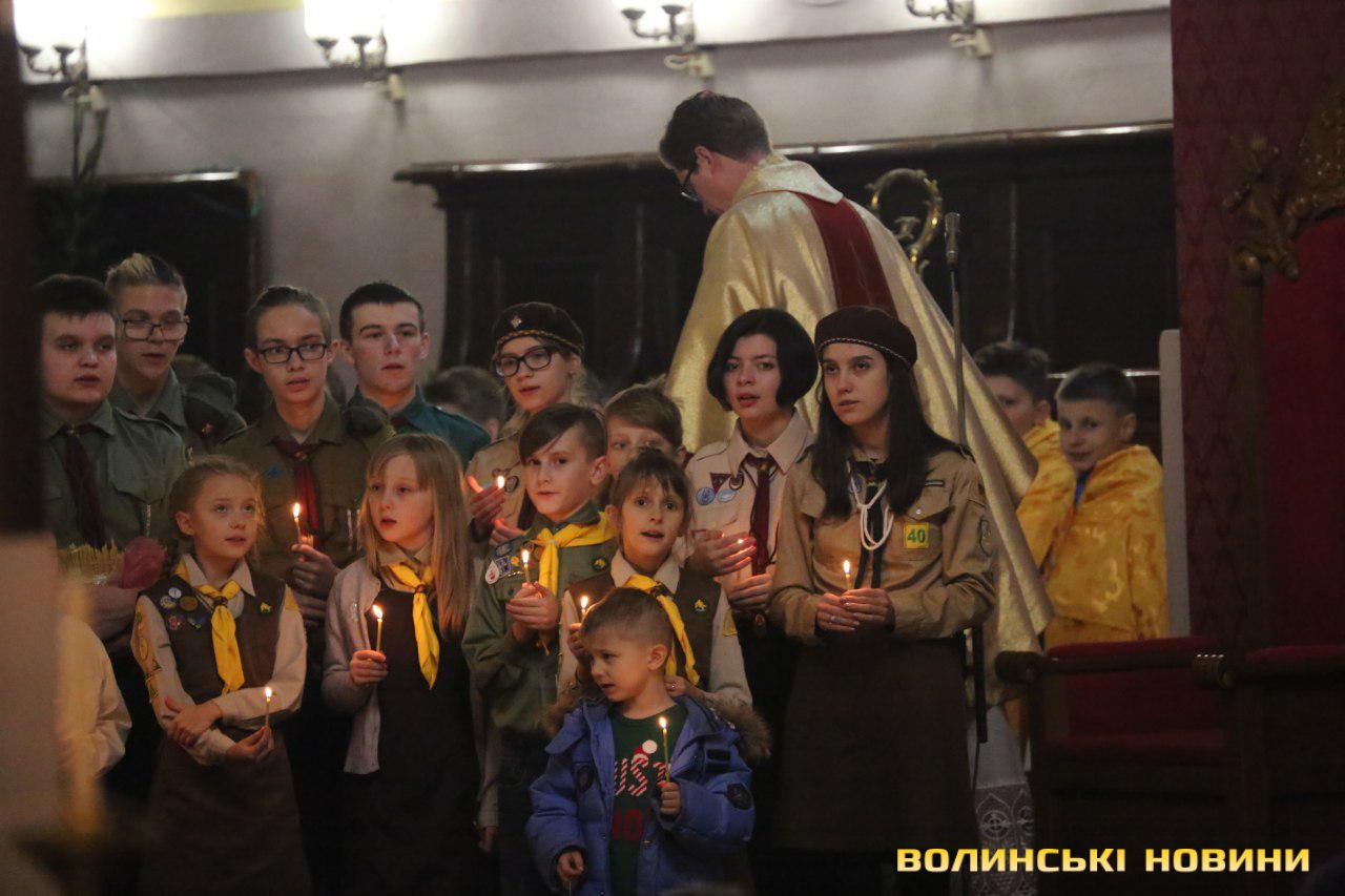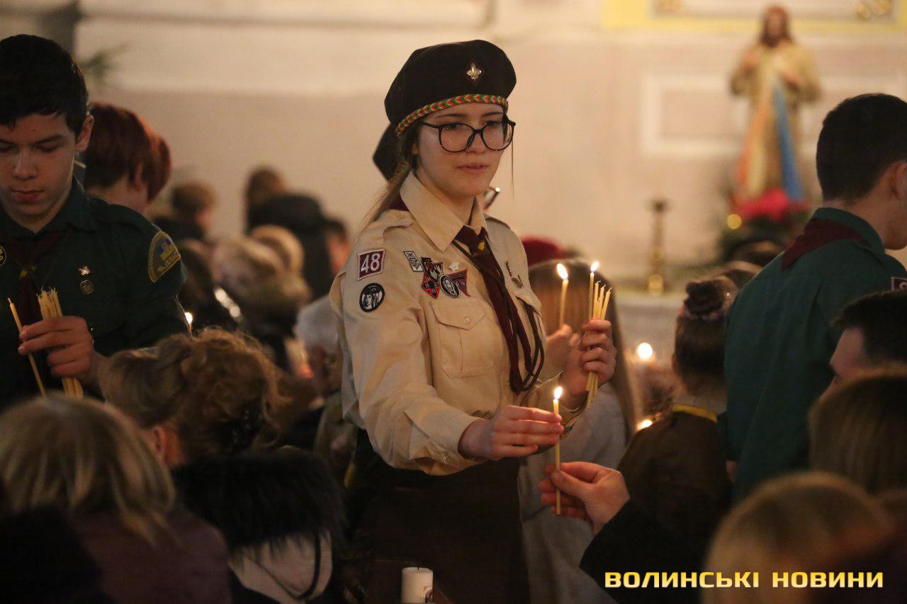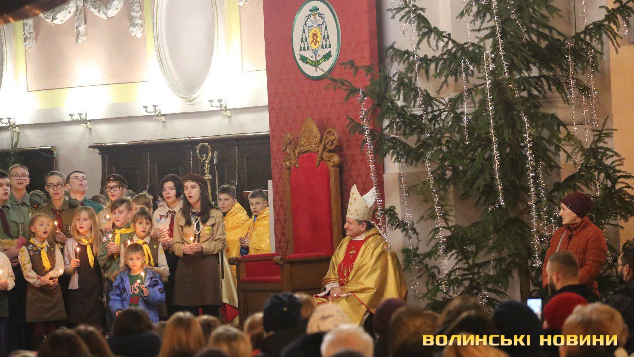 Тихе освітлення костелу доповнювала щира молитва духівників, читання Святого Письма, звучання органу та піснеспіви.Так, єпископ-ординарій Луцької дієцезії Римо-Католицької церкви Віталій Скомаровський зазначив, що все частіше у сучасному світі Різдво набуває комерційного відтінку: люди прикрашають оселі, а дітлахи чекають подарунків. Але найголовнішим, на думку священика, є розуміння того, що найціннішим подарунком на Різдво для кожного християнина є, власне, народження Спасителя Ісуса Христа.