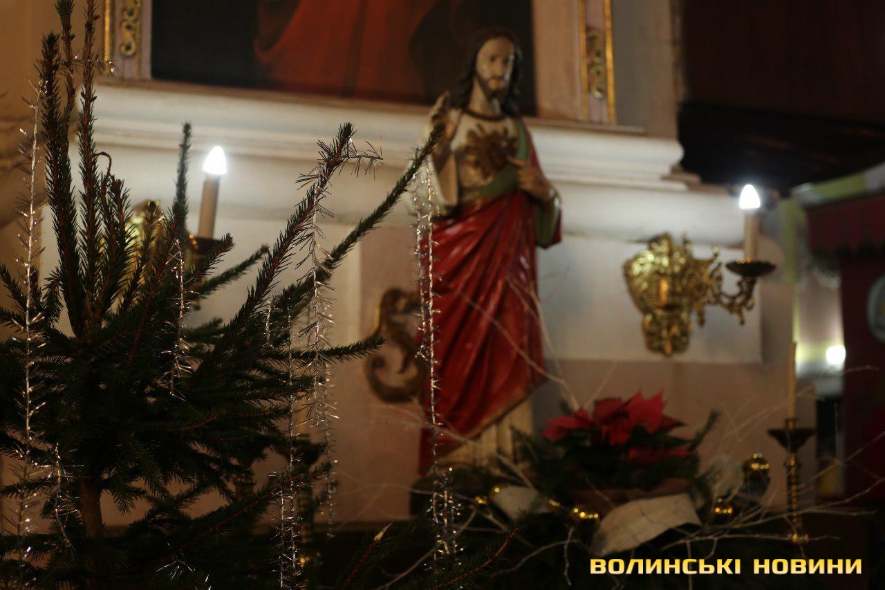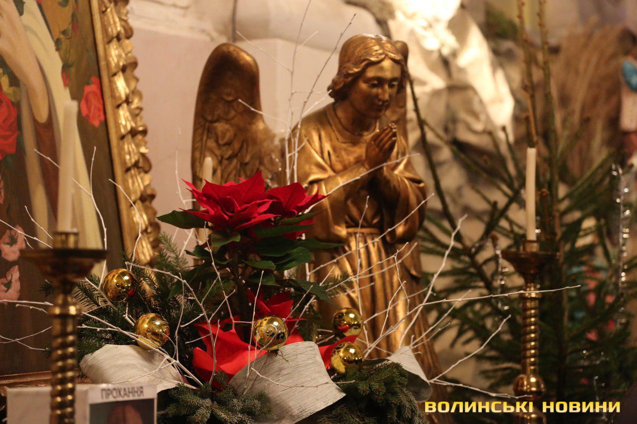 Так, у луцькому костелі святих Петра і Павла атмосфера по-справжньому велична та святкова – до свята храм прикрасили живими ялинками та різдвяниками.