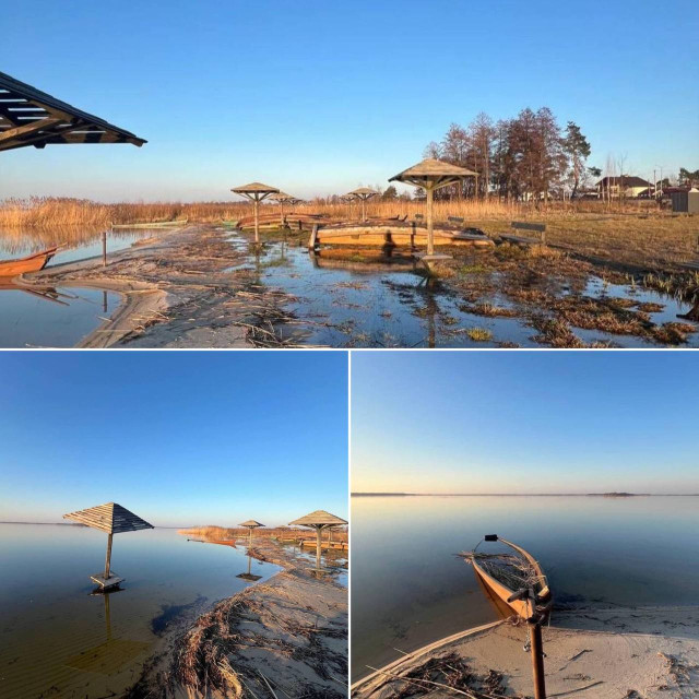 Найбільше озеро в Україні Світязь цьогоріч повноводне. На центральному пляжі помітно, як збільшився рівень води – затопило зони відпочинку, бунгало та пляжі. Навіть катамаран, що лишили на березі, оточила вода.