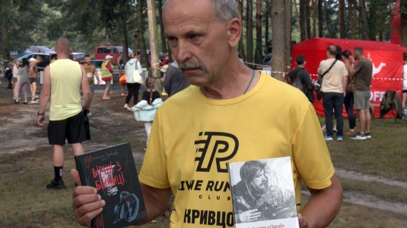 «Він служив в «Ворон-100». Це їхній прапор. Він займався дронами й сьогодні ми біжимо саме за нього», – каже Надія Алексеюк.Світязький марафон пам’яті героїв стартував о сьомій. Першими бігли учасники, які обрали дистанцію 42 км. Таких зголосилось 19 чоловіків. Серед них військовослужбовець з Луцька Андрій Кушнерук. Чоловік не один раз пробігав дистанцію 21 кілометр, а 42 км – біг вперше.О восьмій годині стартували забіги на дистанціях: 21, 10 та 5 кілометрів. Олександр Кривцов з Рівного біг 5 кілометрів, у руках тримав книги свого сина Максима, який був поетом.«Я біг за свого сина – Кривцова Максима на псевдо Далі, молодшого сержанта 3 окремого полку спеціальних операцій ім. Святослава Хороброго та його побратима, якому він присвятив всю цю книгу для Іллі Бетмена Долматова. Ілля Бетмен Долматов посмертно нагороджений Зіркою Героя України, а Максим має найвищу нагороду з рук Валерія Залужного «Хрест заслуги», – розповів Олександр Кривцов.Цього року марафон масштабувався, до нього приєднались рідні та друзі загиблих українців зі Львова, Києва, Харкова, Маріуполя, Івано-Франківська, Тернополя та Ужгорода. Його учасник Валерій Шажко – ультрамарафонець, рекордсмен України зі Львова. Чоловік присвятив свій забіг двом бігунам, які загинули на війні Володимиру Фіалці і Андрію Василькові.«Андрій Васильків служив в 100-ій бригаді волинській. Він захищав рубежі нашої країни на Донецькому напрямку, нам ще до кінця невідома його доля. Це був один з наших бігунів. В 100-ій бригаді служать мої однокласники. Якийсь час в 100 бригаді був мій син, який також зараз на Сході», – каже Валерій Шажко.