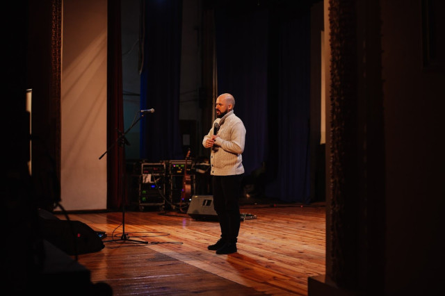 До благодійного заходу для переселенців долучився їхній земляк родом з Миколаєва, офіцер ЗСУ Андрій Тюренков. Він процитував рядки з патріотичної лірики Павла Тичини і підкреслив, що війна та складні обставини лише об’єднали українців. Військовий також побажав переселенцям відчути святкову атмосферу Різдва на цьому концерті та миру в серцях і домівках.
