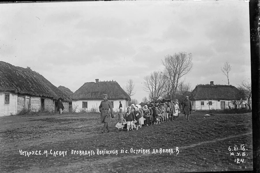 Острівок. Четар УСС Микола Саєвич веде дітей з села до Володимира