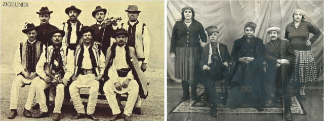 Чи були конфлікти? Безумовно, як і в українців між собою. Просто їх узагальнювати не можна, це не було нормою, не сприймалося, що всі такі.Закарпатські роми-музиканти, поч. 20 ст.; родина одеських ромів, сер. 20 ст.