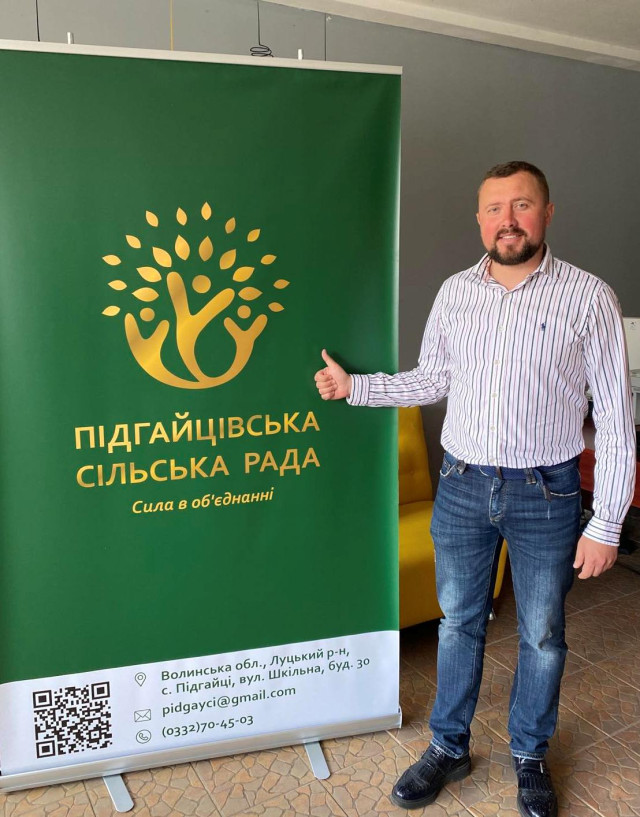 Новий логотип Підгайцівської громади, яка об’єднала 20 сіл та має 7 старостатів, і забрендовану в корпоративні кольори продукцію представив під час сесії сільської ради заступник голови Олександр Бляшук.
