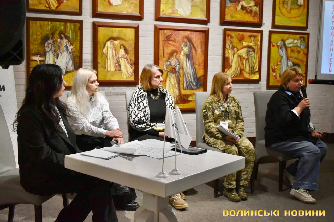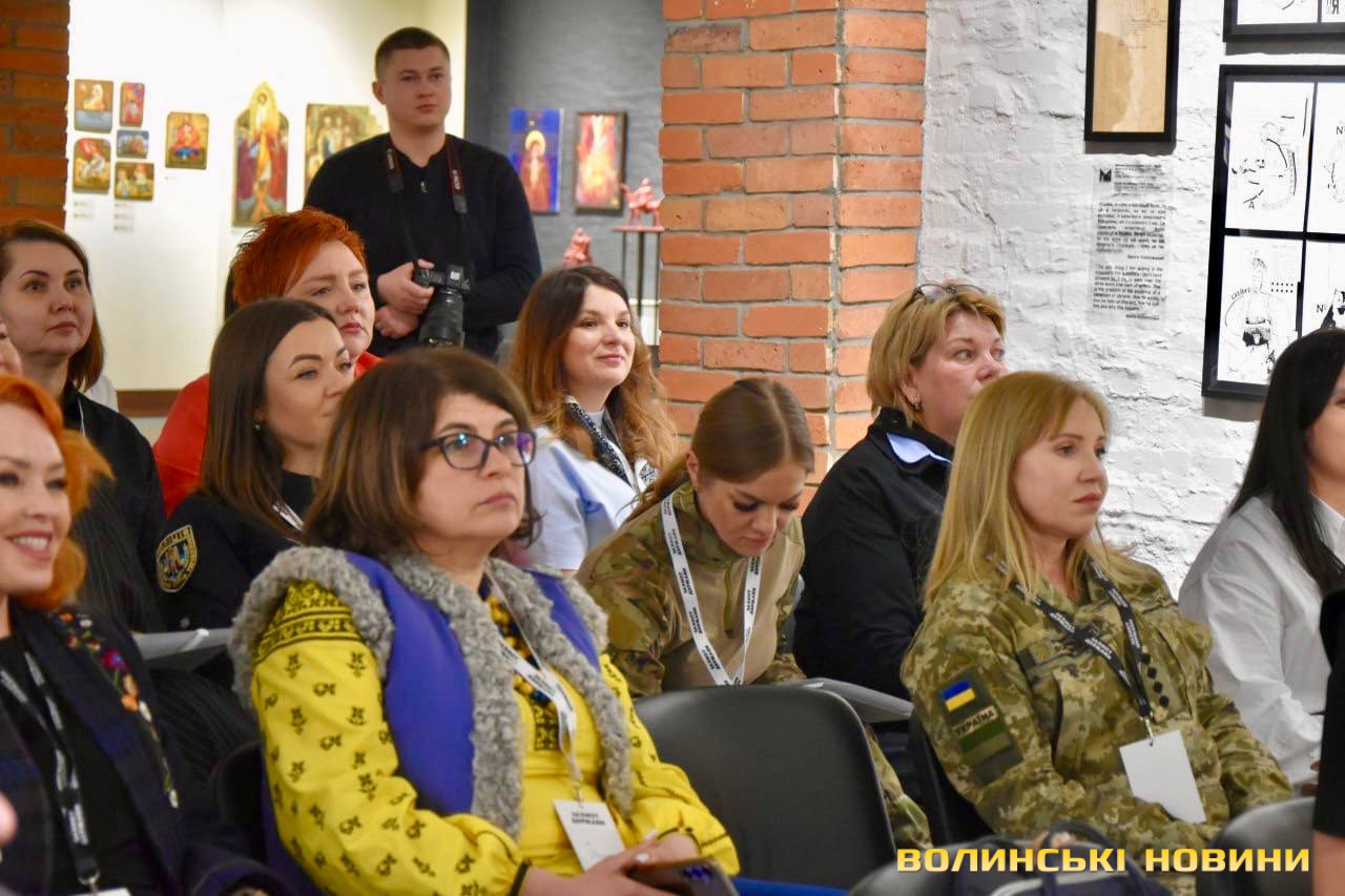 Своєю трагічною історією життя поділилася також гостя з Володимира – Світлана Сидорук. Її чоловік Іван – атовець, учасник бойових дій, звільнений з полону, загинув у страшній ДТП у Сарненському районі у 2023 році.До другої теми дискусії – «Жінки та оборона: волонтерство, підтримка військових і ветеранів» долучилися волонтерка Роксолана Несторук, юристка ГО «Захист держави» Юлія Спас, ветеранка Марина Чумак, представниця ДГІ ДПЛ нацполіції у Волинській області Наталія Бартошук та психологиня Юлія Гуріна.Ця розмова була присвячена жіночому внеску у волонтерство, ветеранську політику та підтримку родин захисників. Учасниці говорили про практичний досвід і про те, як громада може підтримати своїх активісток та запобігти їхньому емоційному вигоранню.Спікерами останньої теми дискусії «Вплив і голос: як жінкам формувати суспільний порядок денний» стали волонтерка, бізнес-леді Олена Ксензюк, в.о. керівниці ГО «Захист держави» Наталка Войтович, ВПО, засновниці ТМ «Vlasna fishka» Анжеліка Сищенко та Ольга Стонога, тренерка з ораторського мистецтва, директорка першої в Луцьку медіашколи COOL Media School Ганна Карамишева-Борисенко.