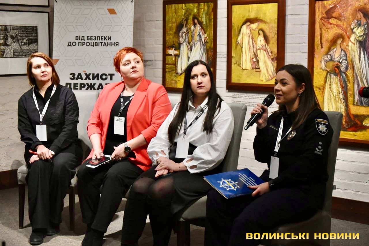 Насамперед т.в.о керівниці Волинського обласного осередку ГО «Захист держави» Наталка Войтович ознайомила гостей з форматом заходу та представила свою команду.«У такий непростий день, як річниця війни, ми вирішили говорити про те, що ми сильні. Бо насправді ці всі роки – це роки незламності, сили, болю та віри. І одна з ключових ролей в жінках. Більшість чоловіків стали на захист країни і на наші колись тендітні, але сьогодні вже сильні плечі, звалилося дуже багато всього, ми працюємо для того, аби наша громада, країна була сильною. Сьогодні ми проводимо зустріч в такому дружньому форматі, і одна з наших цілей – це групуватися, об'єднуватися, колаборуватися, придумувати щось спільне і творити його. У нас багато спікерок, які точно мають що розповісти. І для початку хочу познайомити вас з нашою командою ГО «Захист держави» у Волинській області: медійниця Ірина Кунинець, політтехнолог Юрій Кресак, психологиня Марія Омельчук, юристка Юлія Спас та офіс-менеджерка Мілана Шиманська», – представила команду Наталія Войтович.Форум провели у форматі трьох дискусійних панелей, модерованої дискусії та нетворкінгу. Перша тема для обговорення – «Жінка в громаді: лідерство під час викликів». У цій панелі взяли участь: Тетяна Мялковська – художниця й громадська діячка, мама загиблого Героя, Людмила Кравчук – ветеранка, помічниця начальника 6-го прикордонного загону з питань ветеранської політики, Світлана Сидорук – редакторка «Книги памʼяті», заступниця керівниці ГО «Обʼєднання матерів і дружин Захисників України» у Волинській області, Алла Доманська – депутатка Луцької міської ради, співголова секретаріату коаліції «Волинь 1325», Леся Коробчук – інфлюенсерка і бізнес-леді та Олена Пархомей – керівниця ГО «Шлях жінки».Учасниці обговорили, як змінилася роль жінки після 2022 року та чому жінки дедалі активніше беруть відповідальність за суспільні процеси.