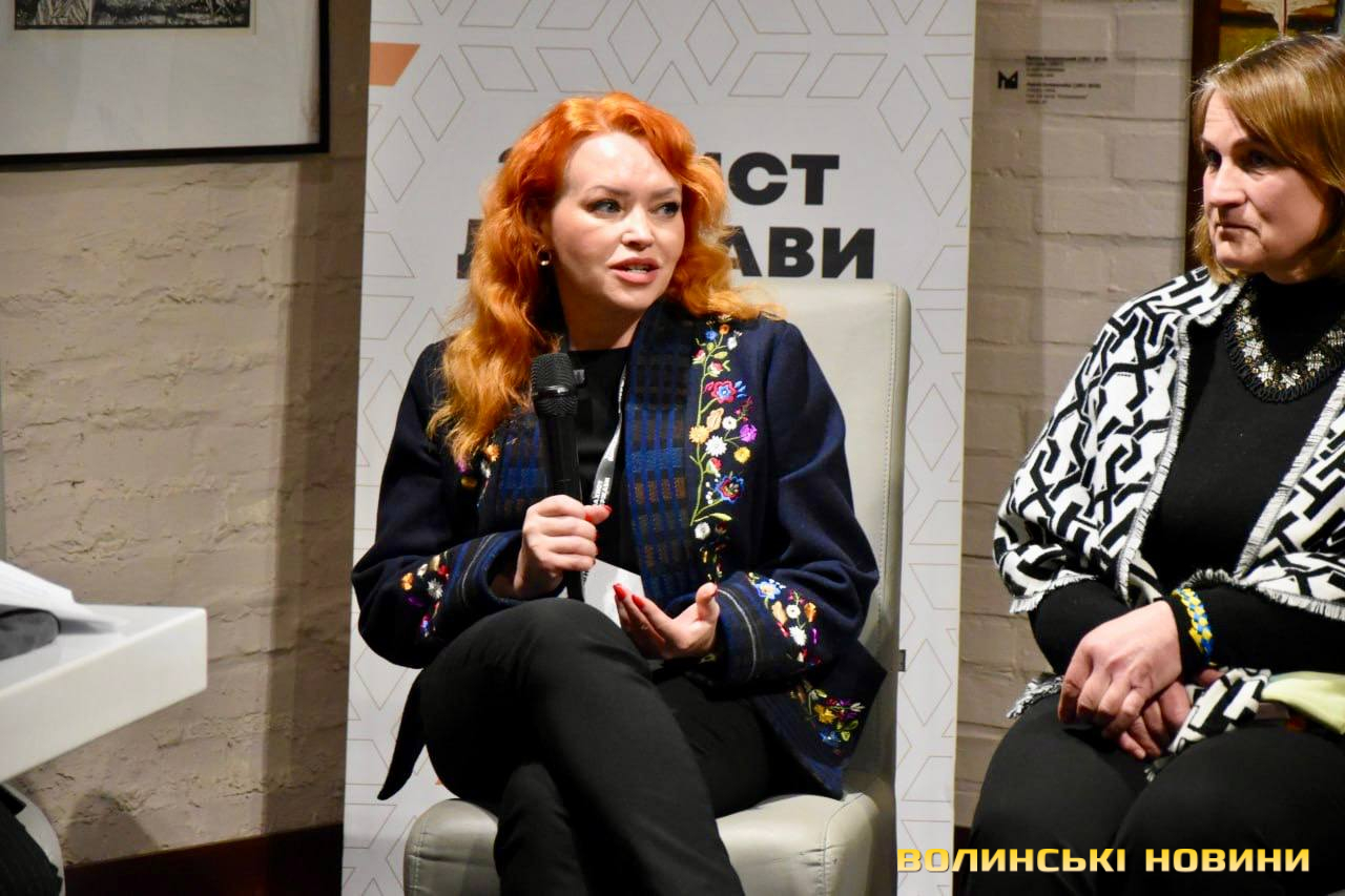Першою слово взяла художниця, засновниця арт-студії «Пятерня», мама загиблого Героя Тетяна Мялковська. Вона розповіла про заснування творчої реабілітації для воїнів, постраждалих від війни дітей, а також інші проєкти, які вдалося втілити починаючи з 2014 року. Серед останніх – артрезиденція в памʼять про сина.«Найбільша місія жінки, на мою думку, це материнство. І воно у мене склалося, от тільки, на жаль, обірвалося. Тепер я, як матір, мушу нести гідно і дуже впевнено цю місію, бо тепер живу, працюю і несу ідеї за двох. Ще одна місія – виховати тих, кого ми народжуємо, або тих, кого народили інші, і ця тема, я вважаю, дуже гостро постала під час війни. Освіта і виховання – це фундаментальна річ для духовності. Жінка є носійкою цього, вона є крилами чоловіка, бо дуже відчуває ці духовні поклики енергії. Звичайно, що війна – це дуже темна зона, але вона породжує світлих людей і місця. І коли у більшості хлопці, хоча є і багато дівчат серед них, пішли на передову, то на плечі жінки впало не чотири, а п'ять кутків в хаті і ми не можемо права їх завалити, бо саме за це кладуть життя наші воїни. Ми вже не будемо тими, якими були до війни, це однозначно. Тому я впевнена, що Україна соціально, як держава, зміниться», – зазначила Тетяна Мялковська.Наступною до обговорення долучилася Алла Доманська, на її думку, жінка – це не лише про духовність та натхнення, але й про інші важливі аспекти життя.«Дуже часто ми говоримо про професію лише в чоловічому понятті, не забуваймо що є – військовослужбовці та військовослужбовиці, депутати та депутатки, бо створюється загалом образ чоловіка, але серед них є і жінки, і на них теж велика відповідальність. У нас існує така ілюзія, що панує матріархальне суспільство, бо як жінка вдома сказала так і буде. Але дуже легко у побутових речах чоловіки віддають нам право вирішувати – як виховувати дітей, як їх годувати, іноді й чоловіку підібрати гардероб, але коли йдеться про прийняття важливих рішень, розподіл ресурсів, статистично жінок там мало. В Україні у нас також мало міських голів жінок, ректорок університетів, не було ще жінки-президента. Те ж саме стосується і «чоловічих» професій та оплати праці. Щодо материнства – суспільство ставить задачу бути матірʼю, але коли ми виходимо на роботу, нас ніхто не жаліє. І коли я, як жінка, маю виконати якісь задачі, мені ще паралельно треба вирішити, де подіти на той час дитину. Тому ми тут починаємо говорити і про сприйняття працюючої жінки-матері, її права, про державу, яка має створити ці умови. Зрештою, не кожна робота вимагає повне включення мами, тобто це можуть бути і роботодавці, які підуть назустріч і створять, наприклад, дитячі кімнати», – додала Алла Доманська.Ще одна спікерка – ветеранка Людмила Кравчук, підняла тему ролі жінки саме у військовій сфері. Вона на прикладі власного досвіду розповіла, як змінилося її життя.«Спогади про 24 лютого 2022 року для мене болісна тема. Я служила на посаді інспектора прикордонної служби вищої категорії – фельдшера під Маріуполем. О 2:30 ночі почалася повномасштабна війна, обстріли тривали до самого ранку. І коли ми всі виїхали в місто Маріуполь, ми не знали, що робити, як діяти і куди власне бігти. Мій начальник сказав жінкам, що всі, хто бажають, можуть бути вільними, а хто хоче лишитися, зробити крок вперед. І я зробила той крок, який змінив карди