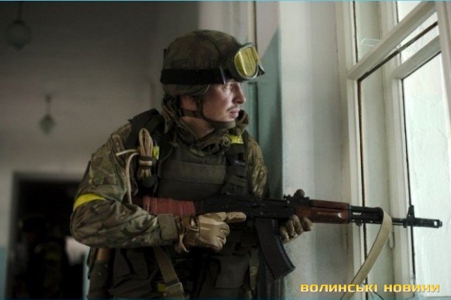 Ольга Ляшук – вдова загиблого у боях за Іловайськ командира взводу роти патрульної служби особливого призначення «Світязь» Максима Ляшука. Лучанка виховує 8-річного сина.29 серпня 2021 року виповниться сім років, як її чоловіка вже немає серед живих – цього дня його життя відібрала ворожа куля під час виходу з Іловайська.На фото - командир взводу роти «Світязь» Максим Ляшук на бойовій позицій в школі № 14 Іловайська. Зона АТО, серпень 2014 р.
